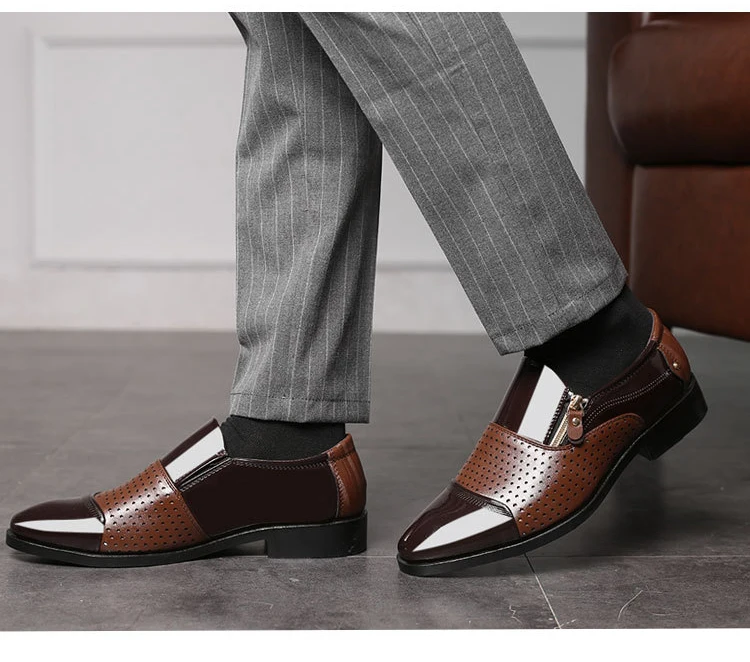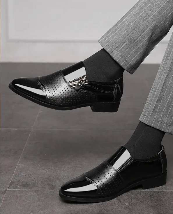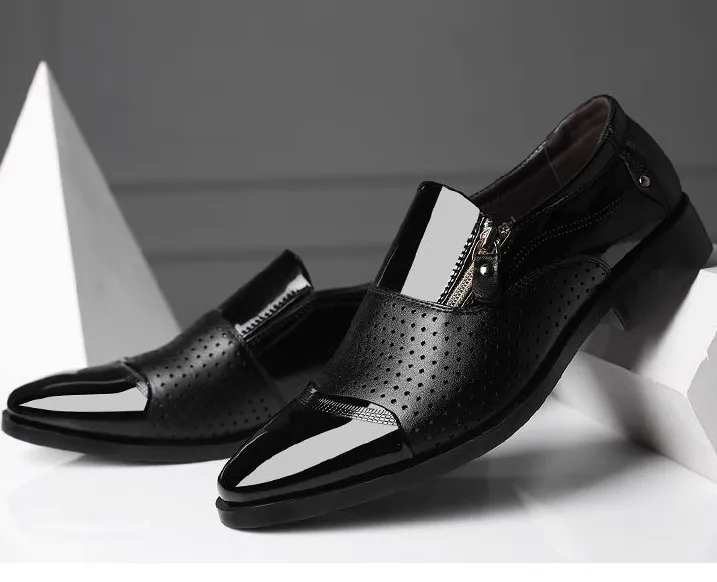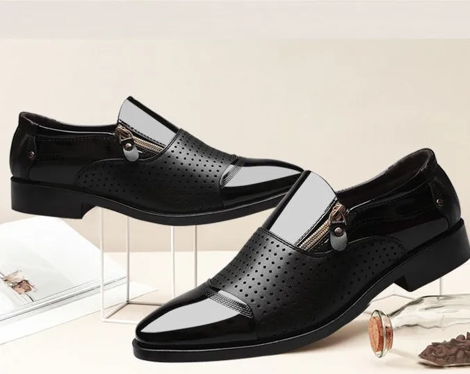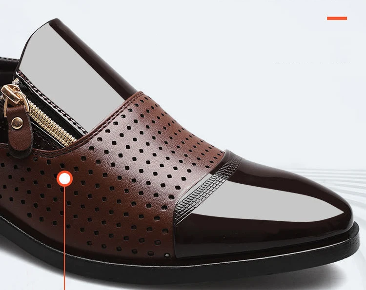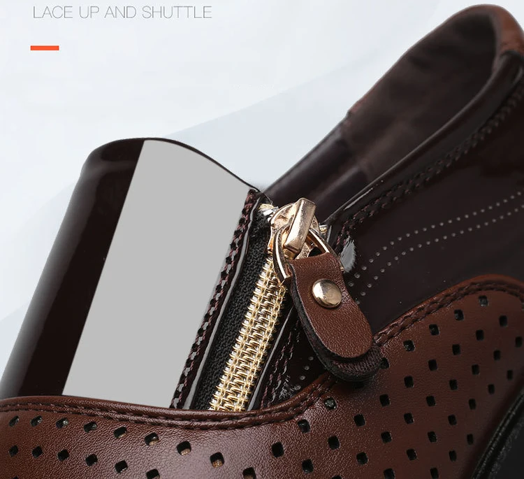 Four Seasons New Mens Business Leather Shoes Lightweight and Breathable Set Foot Sandals Hollow Out Business Dress Shoes