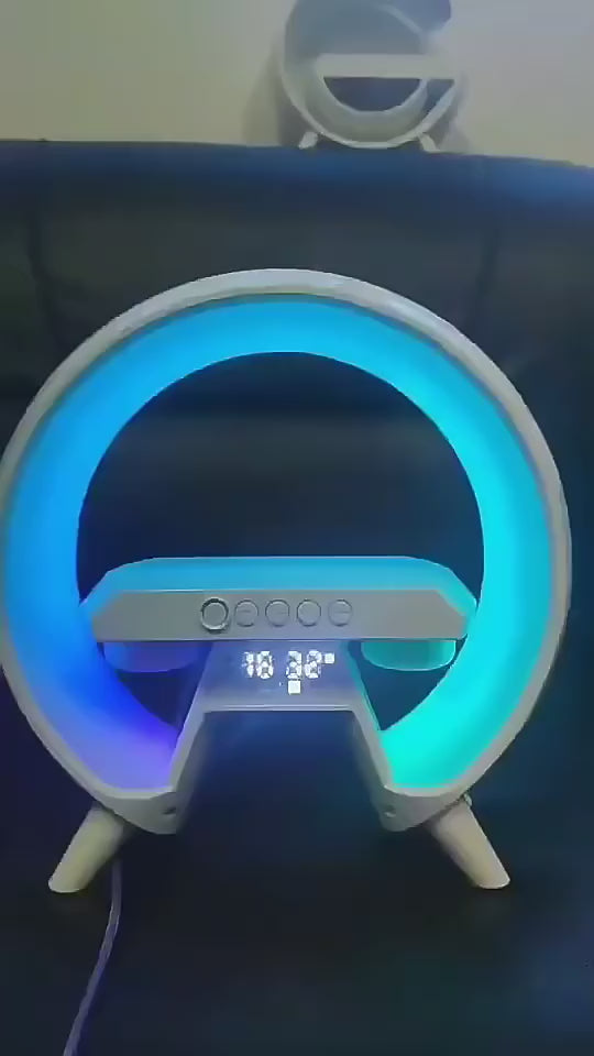 G Shape 3 in 1 Wireless Charger Lamp Speaker Wireless Charger With Speaker Light and Clock Transparent Speaker