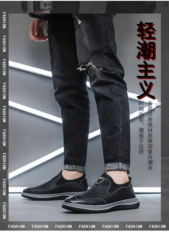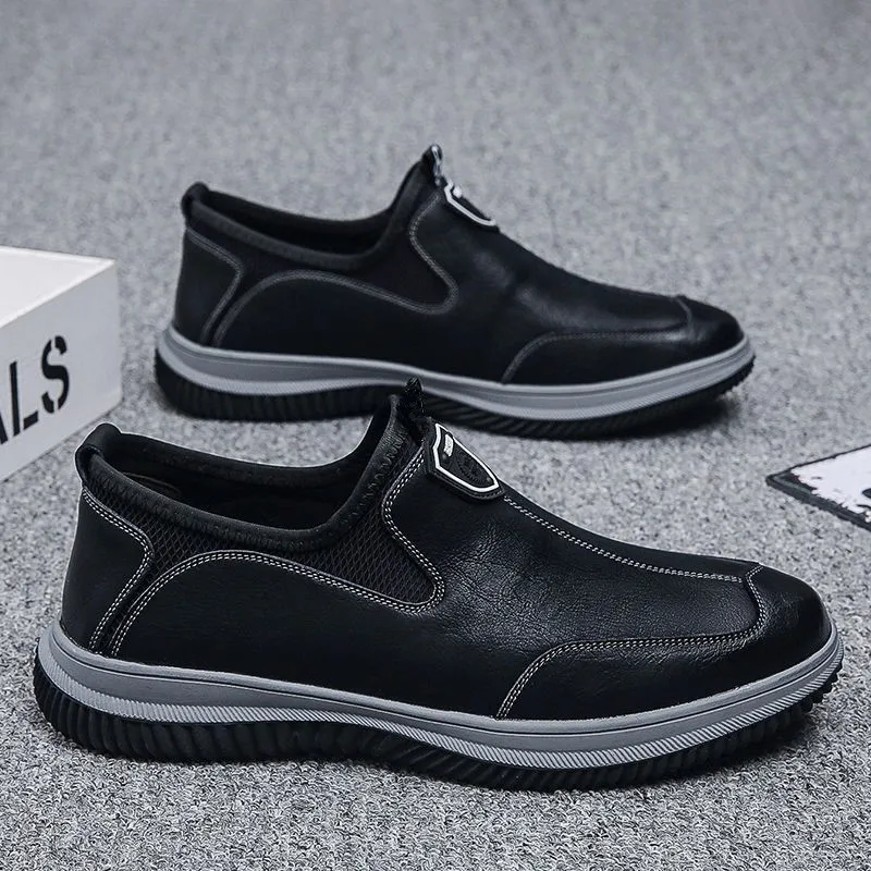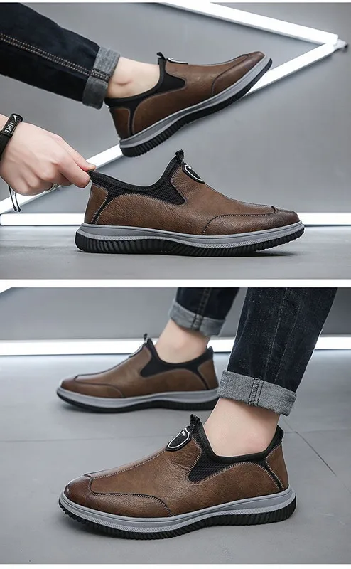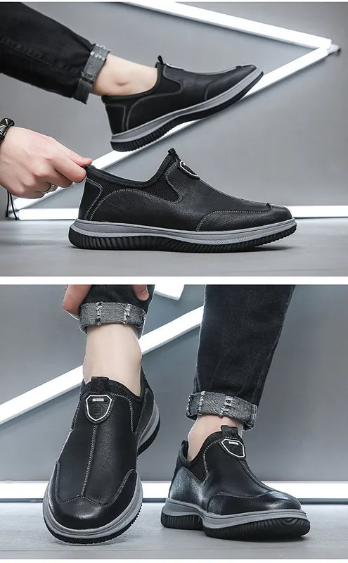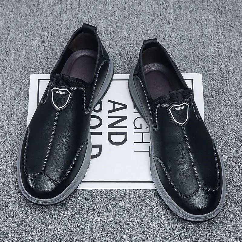 Leather Upper Rubber Out-sole Anti slip Waterproof Men's Soft Flat Leather Walking Loafers Shoes for Man