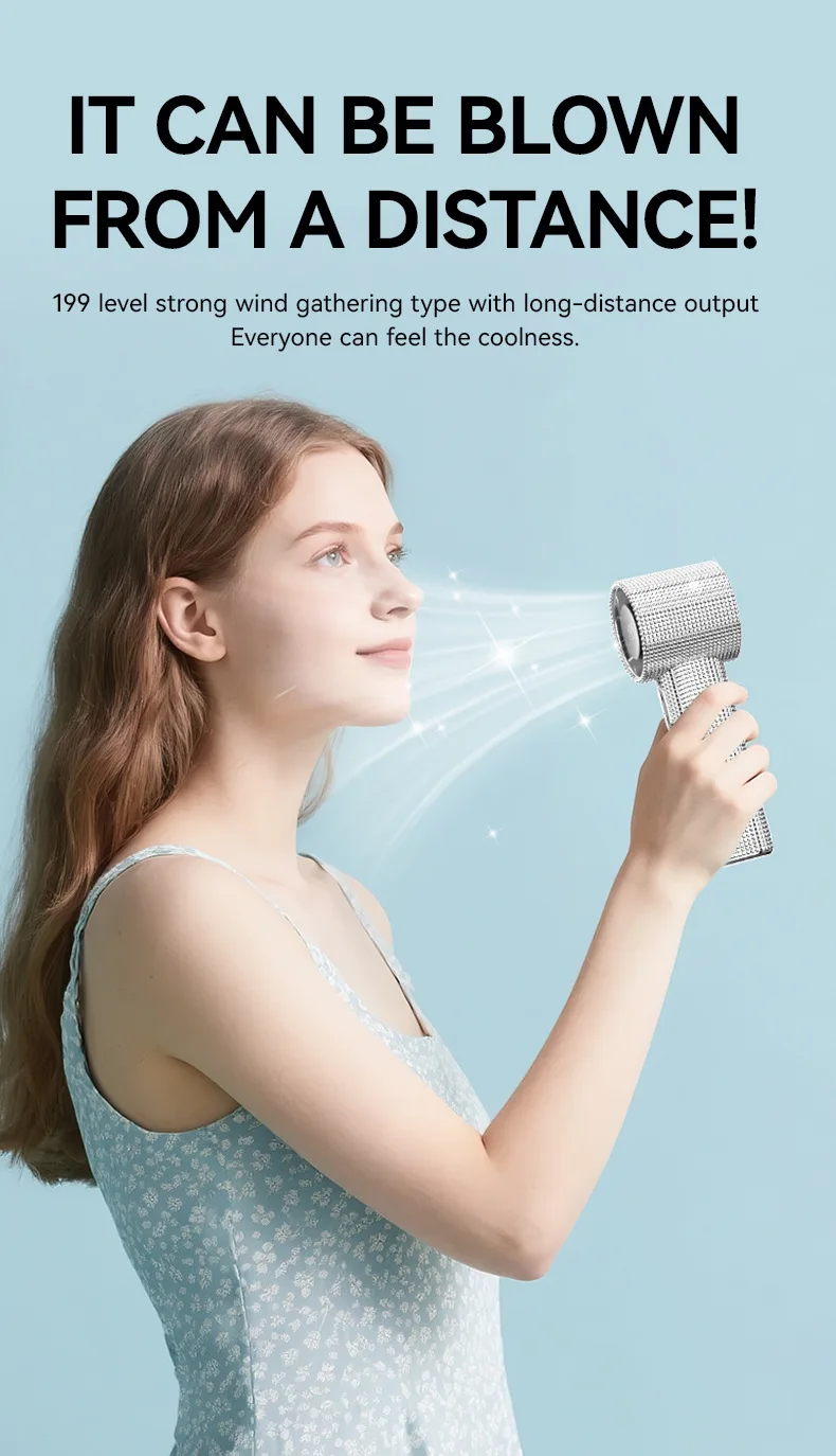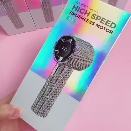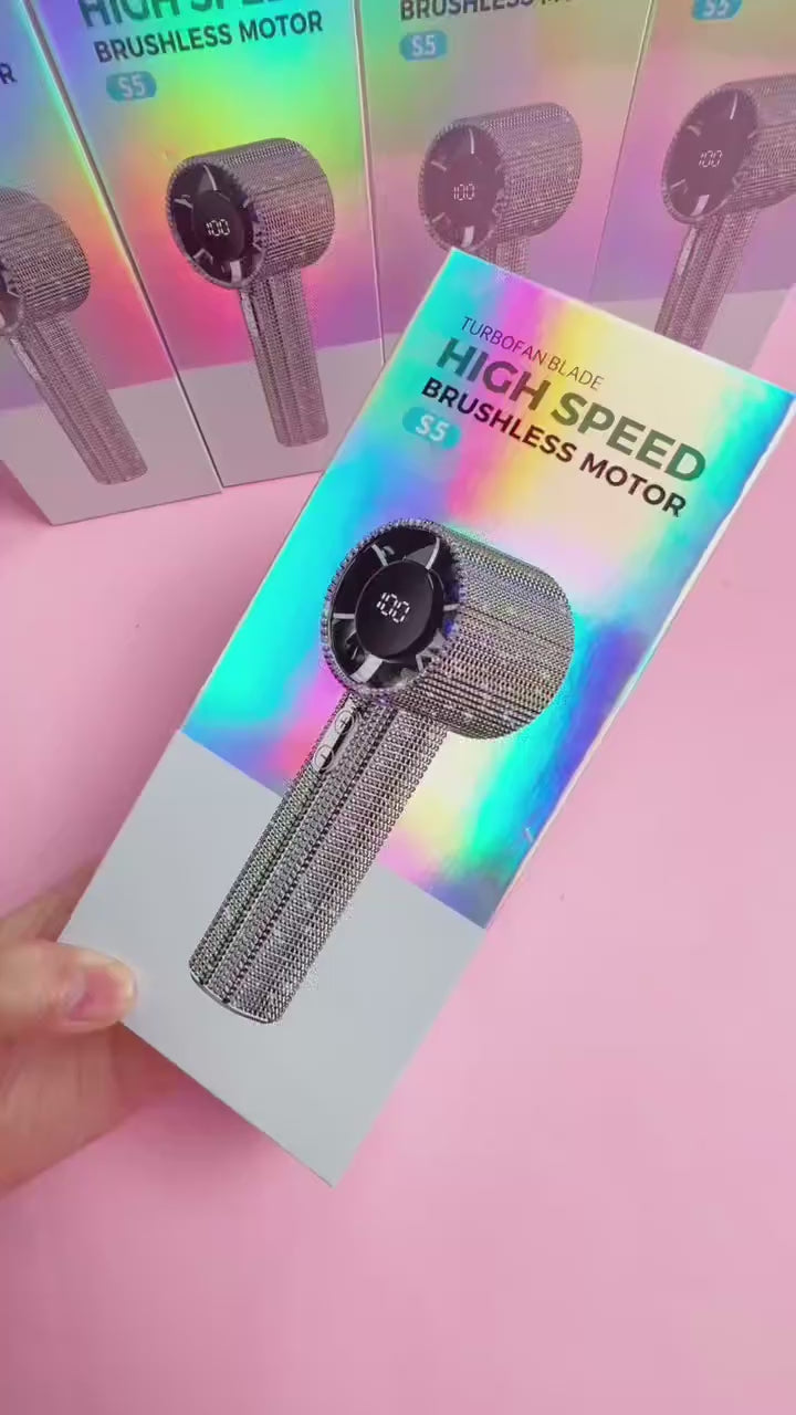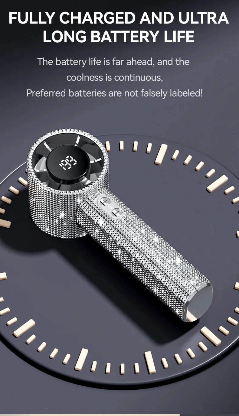 Mini Portable Handheld Fan Diamond Style 199 Speed Digital Display High-Speed Battery Shiny