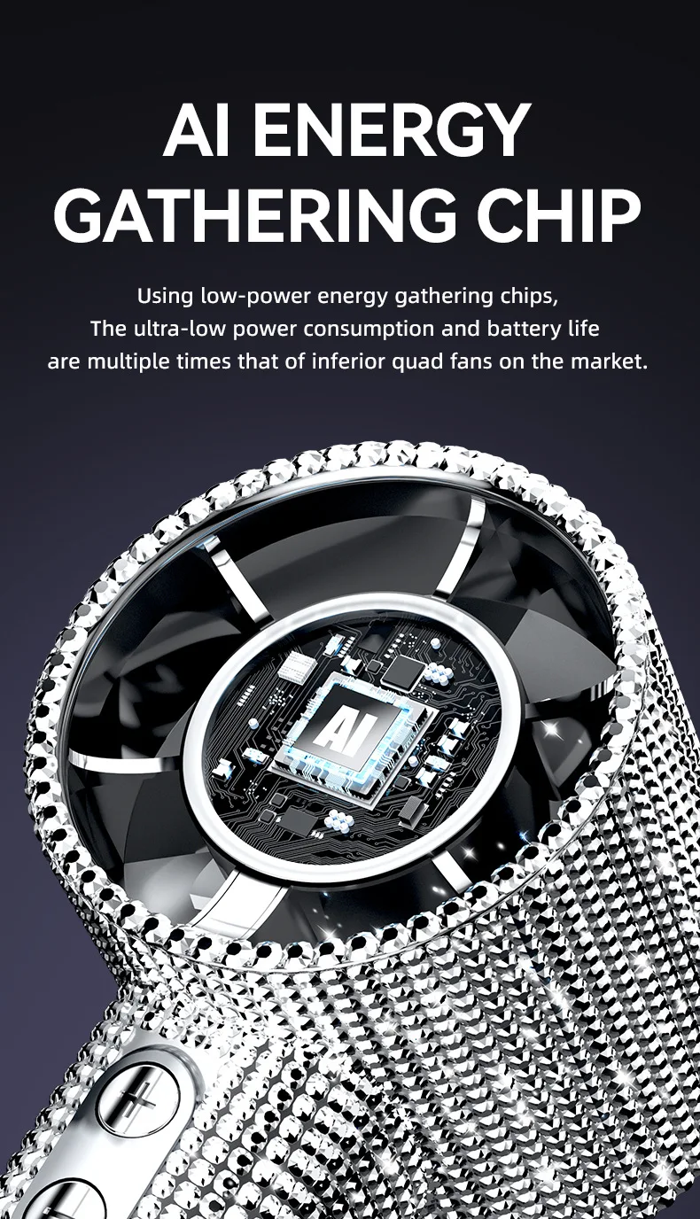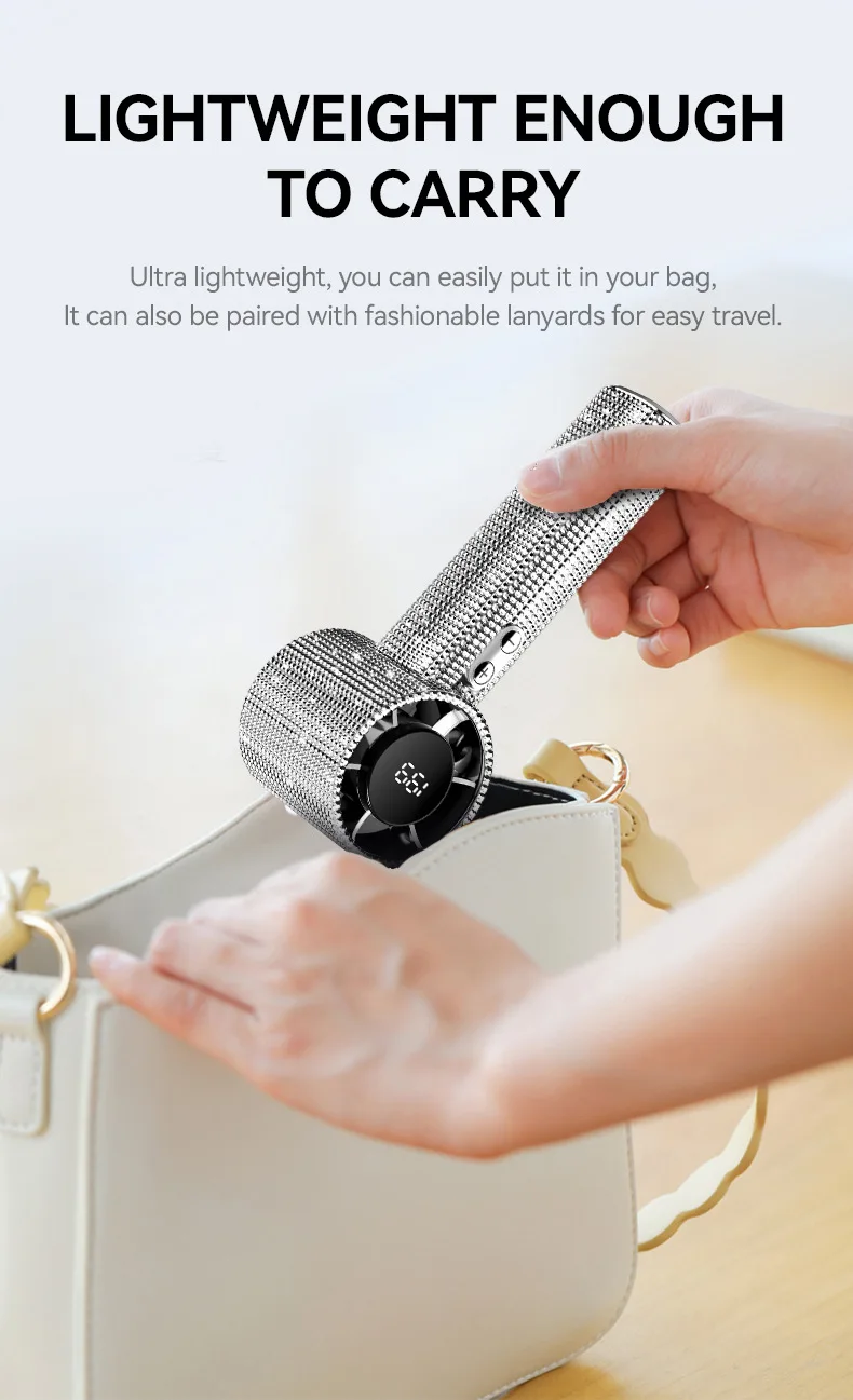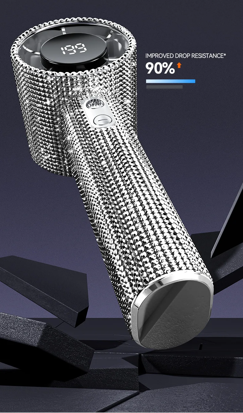 Mini Portable Handheld Fan Diamond Style 199 Speed Digital Display High-Speed Battery Shiny